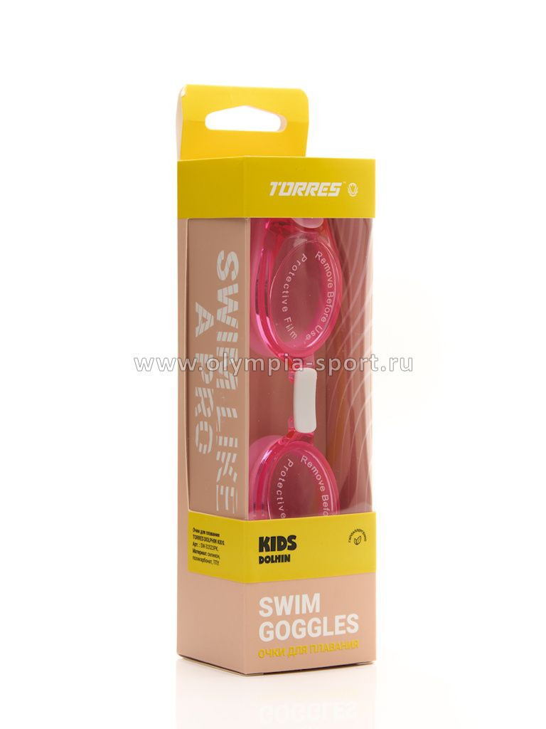 Очки для плавания детские TORRES Dolphin Kids, розовые линзы, розовая оправа, 2-5лет